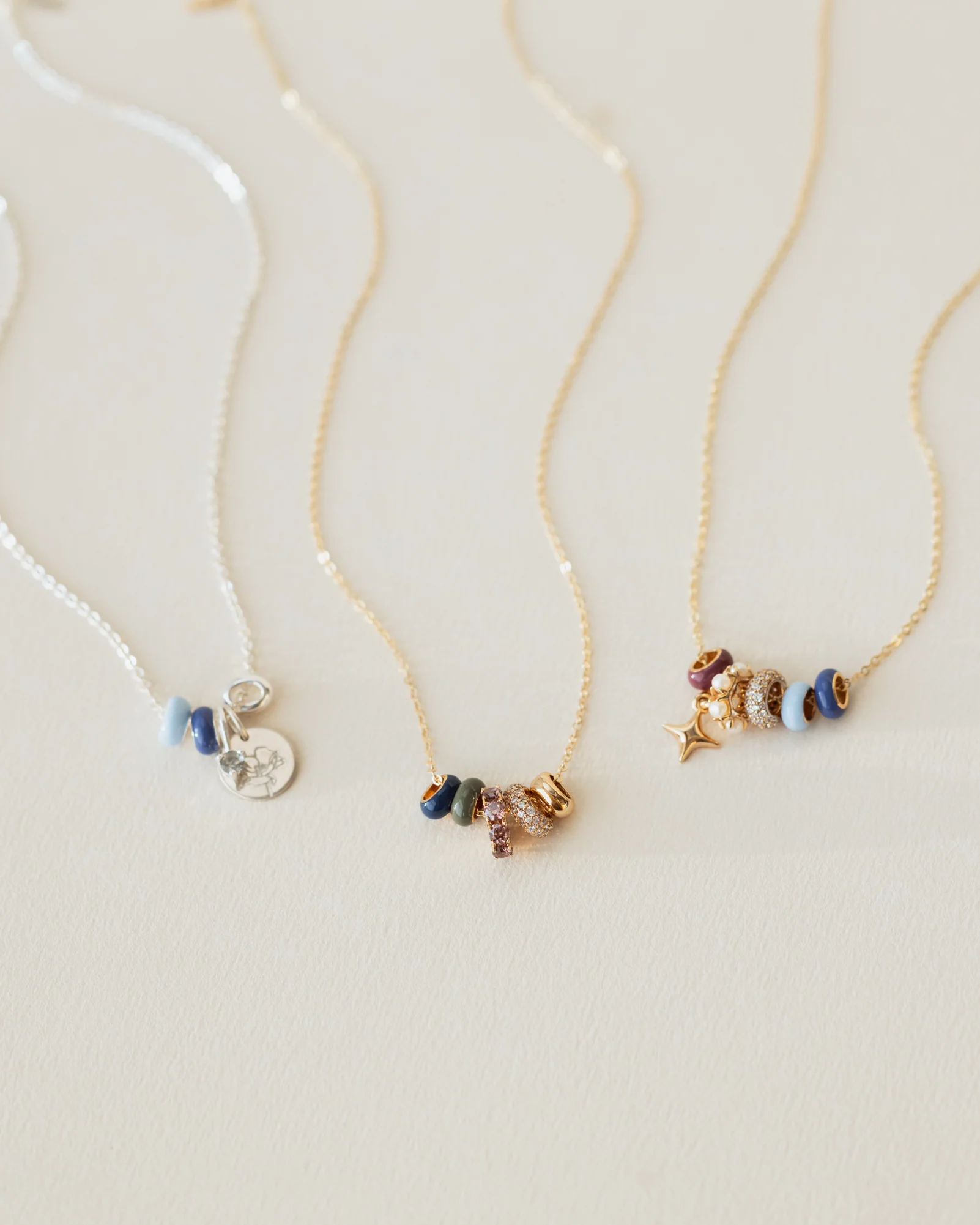 Add our Pavé Beads, Essential Beads and charms to make the necklace fully your own over the years!