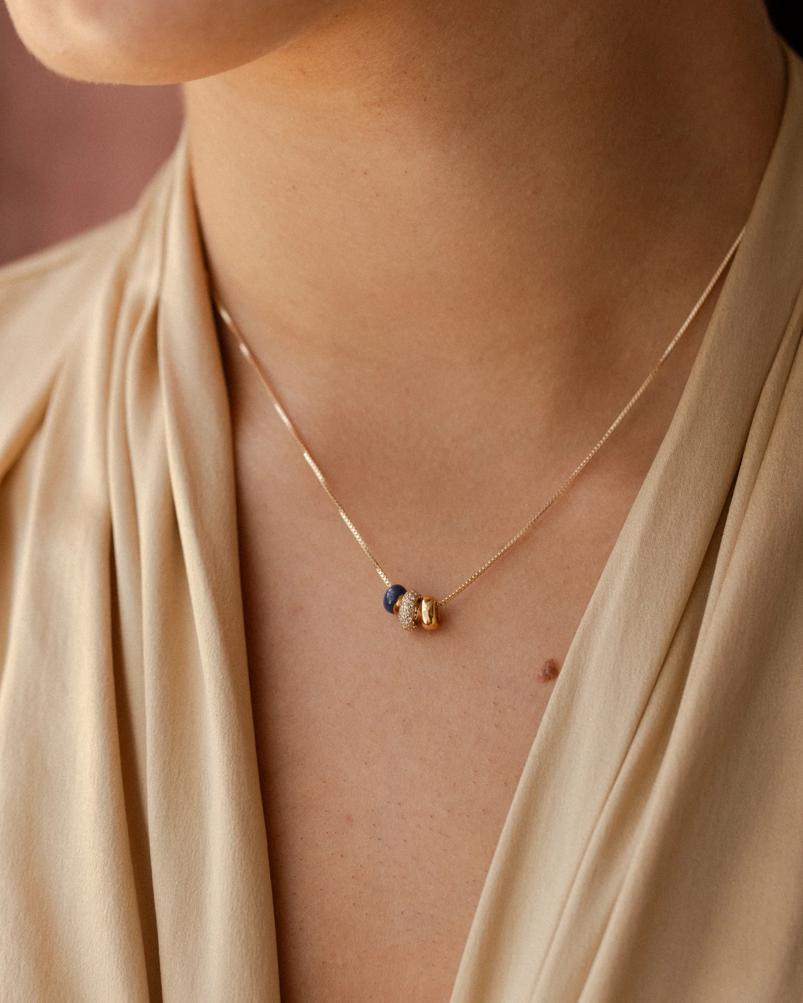 Start your signature necklace with three beads: one Pavé Bead, one Essential Bead and one Aura Enamel Bead (in your choice of color!) on our classic box chain. A friend to tees, button-ups and sweaters alike.